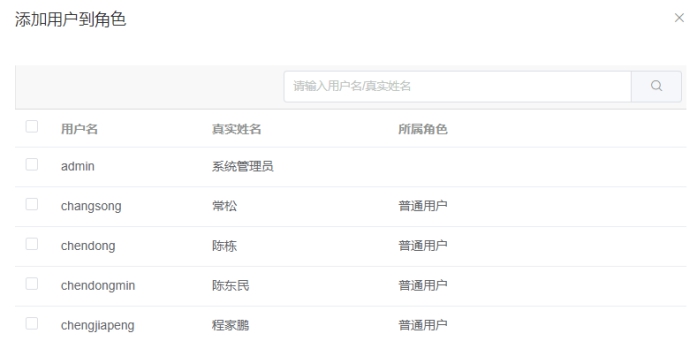 角色用户:需要添加角色用户时,选择角色列表中的某个角色记录,点击角色名称或【
