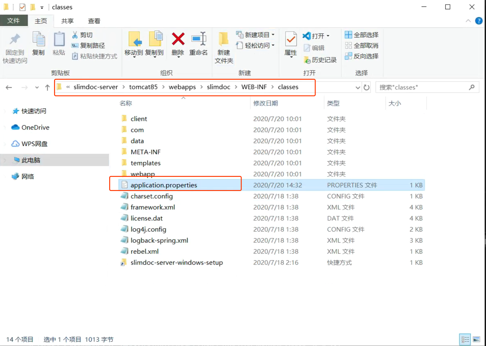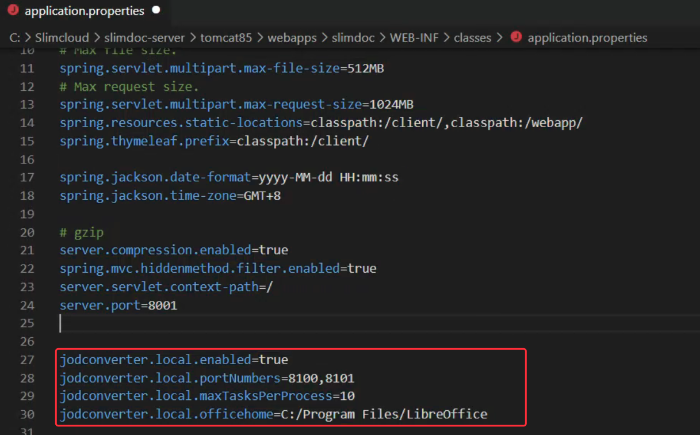 找到服务安装目录下的tomcat85\webapps\slimdoc\WEB-INF\classes\application.properties文件